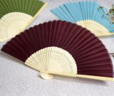 Fans are $1.50 each. New, never used. Make your wedding or party memorable by using our silk hand fans. This practical and pretty favour will keep your guests cool while they watch your ceremony. 8.25" in length when folded 8" X 14.5" when opened. Have 20 of each colour. Apple Green, Black, Burgundy, Brown, and Fuchsia.