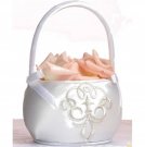 New. This 10" x 6.5" guest book is covered in ivory satin embroidered with an ivory leaf and vine pattern. The wedding guest book has 30 two-sided pages. Pen $11, Flower Basket $9, and Ring Pillow $13. | $11 | |