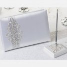 Silver Scroll Guest Book and Pen Set