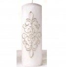 Diamond White or Ivory Palm Wax Pillar Candle with Verse New. Standing 8.5" tall, this wedding palm wax pillar candle is decorated with white or ivory satin ribbon, a gold plated diamond ornament and a gold verse. The verse reads "And The Two Shall Become As One." | $26 | |